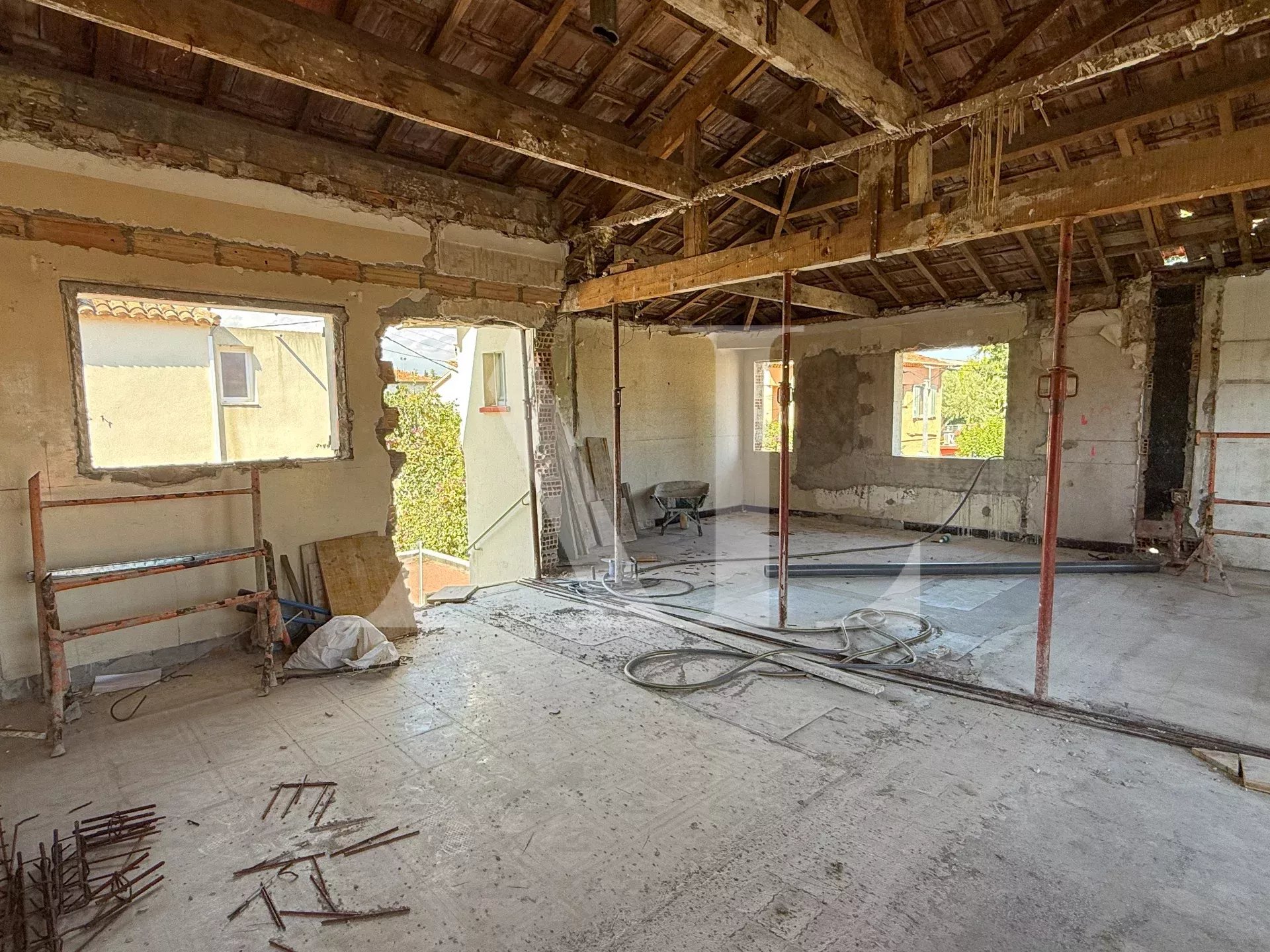 Idéalement située à quelques minutes à pied des plages et du centre-ville de Golfe-Juan, cette maison de 140 m² sur deux niveaux est édifiée sur un terrain de 184 m². Elle offre un beau potentiel d’aménagement avec, à l’étage, la possibilité de créer trois chambres et deux salles de bains, et au rez-de-chaussée, un vaste séjour avec cuisine ouverte complété par une chambre en suite.