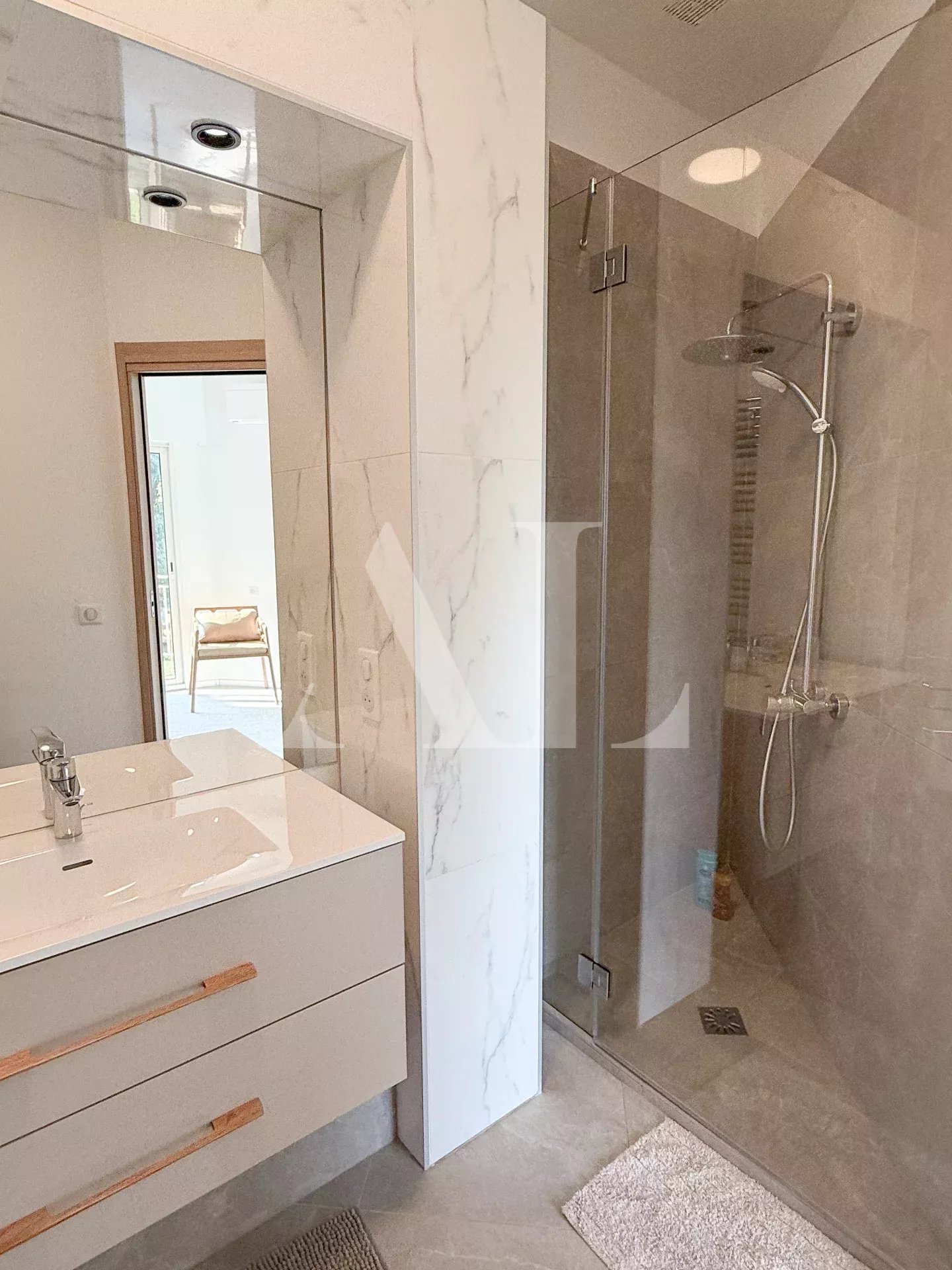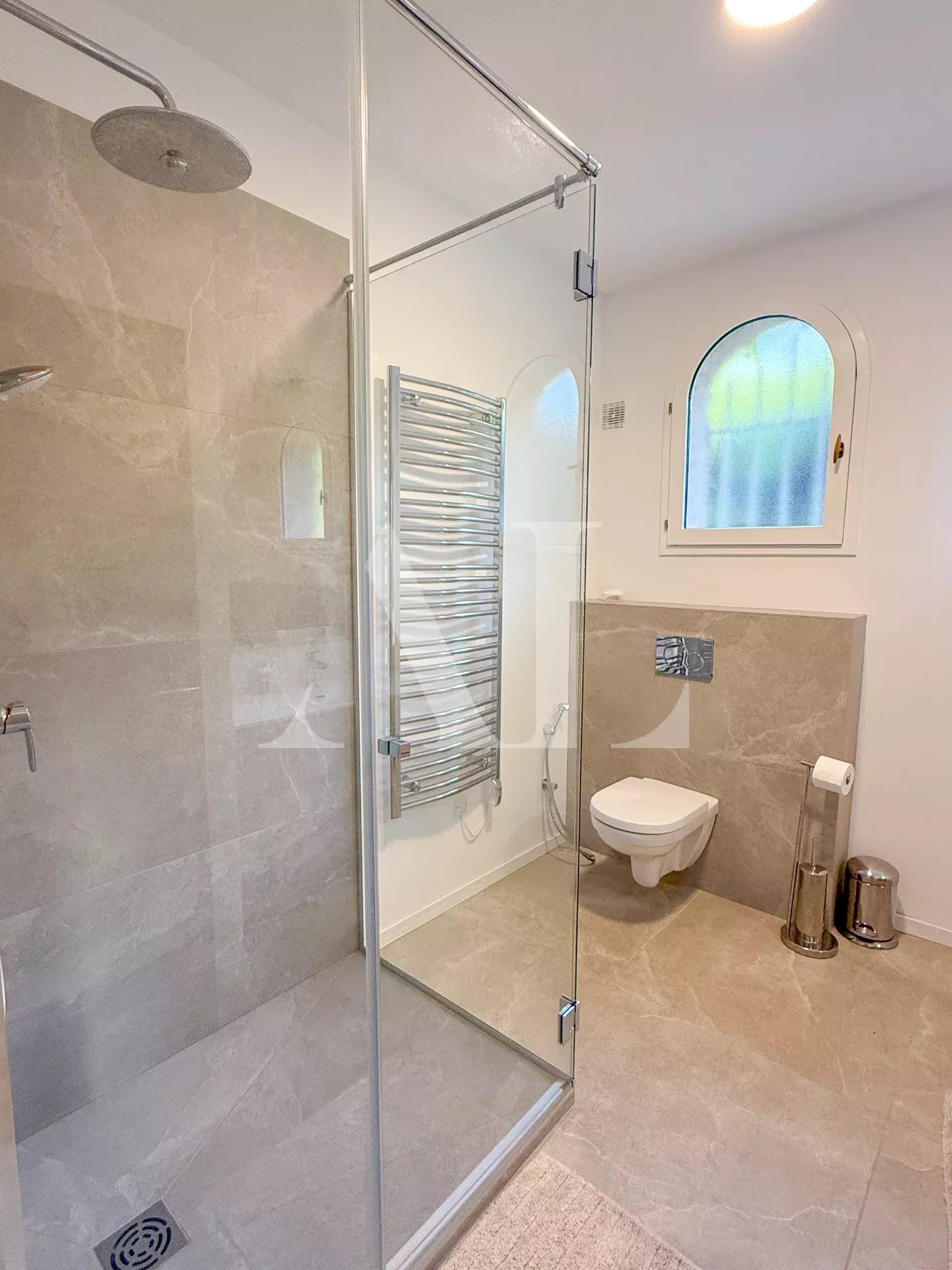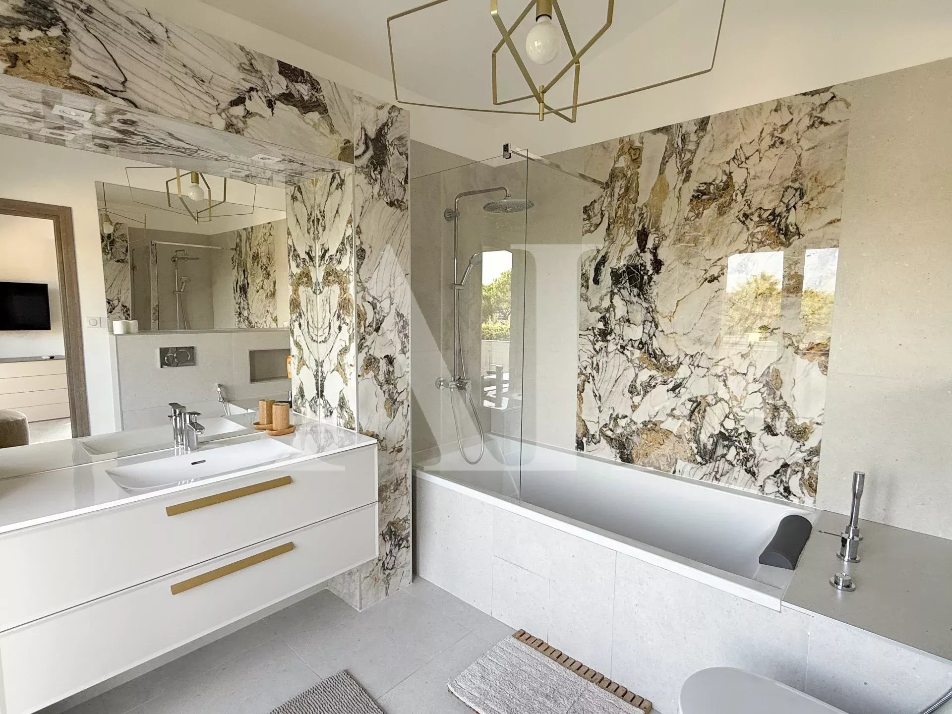 La seconde villa: hall, cuisine ouverte sur séjour, 3 chambres avec chacune leur salle de bain, plusieurs dressing ainsi qu'un annexe un appartement 2 pieces. Rénové avec beaucoup de gout et de belles prestations.