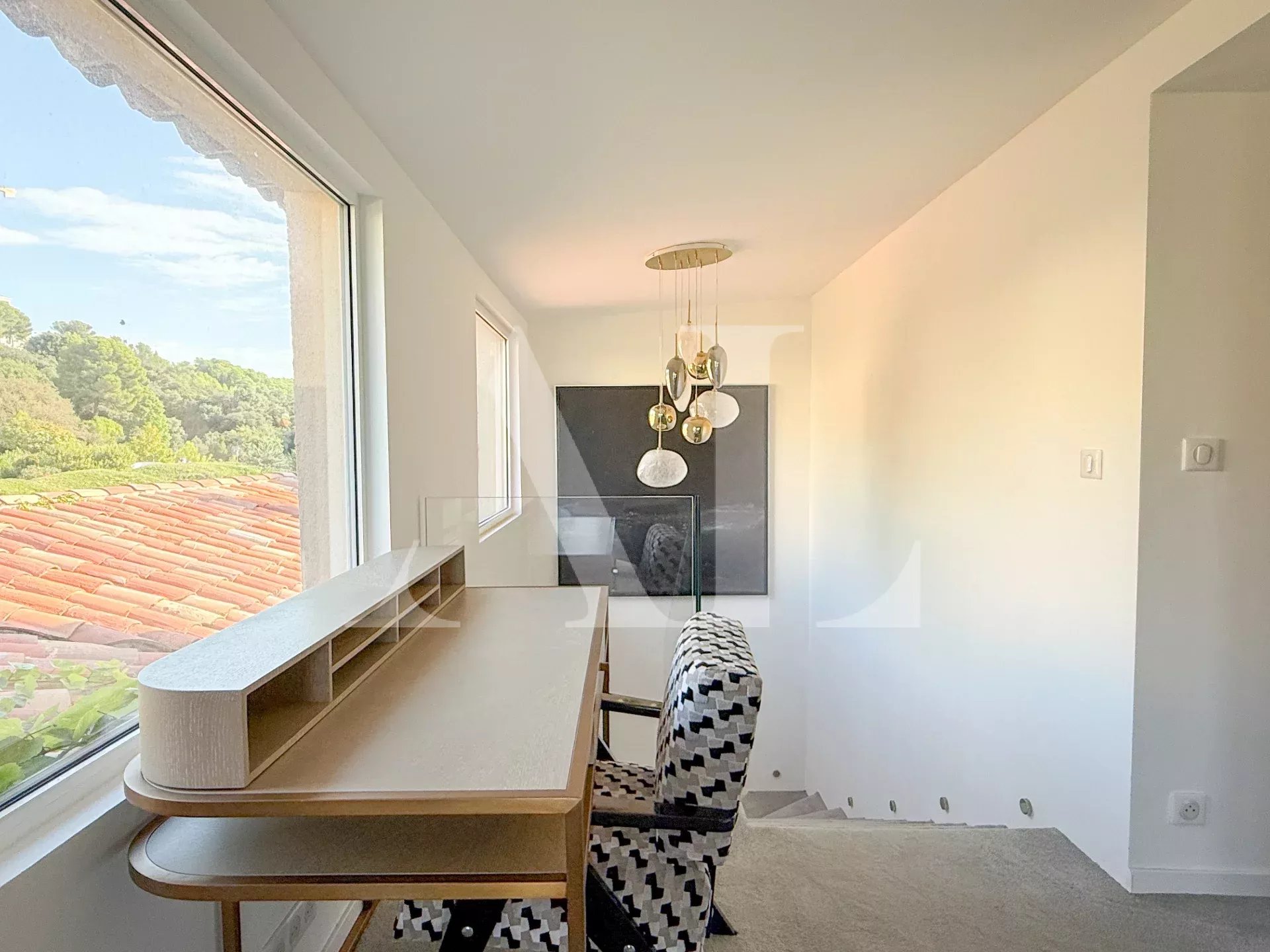 Belle adresse pour cette propriété comprenant 2 villas totalisant 400 m2 sur un terrain de 2200 m2. Située au calme dans un secteur très résidentiel avec un bel aperçu mer.